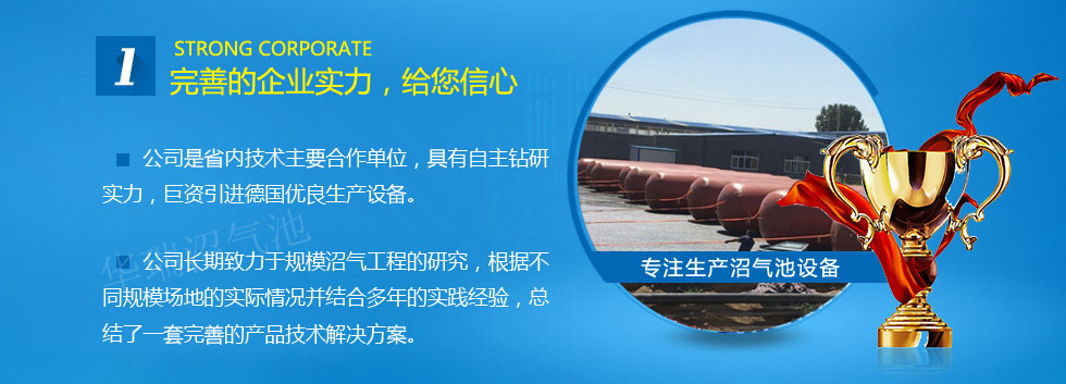 雄厚的技術力量和二十多年的生產經驗,增加養殖場沼氣池產品的新穎性和吸引力,增強使用效果,公司全體同仁將不懈的努力,不斷地追求卓越的質量、創特色的品牌及完美的企業形象。公司是一家集紅泥沼氣池設計施工監理為一體的大型著名企業,誠信至先,服務至上,品質至美是我們不懈的追求,讓廣大軟體沼氣池